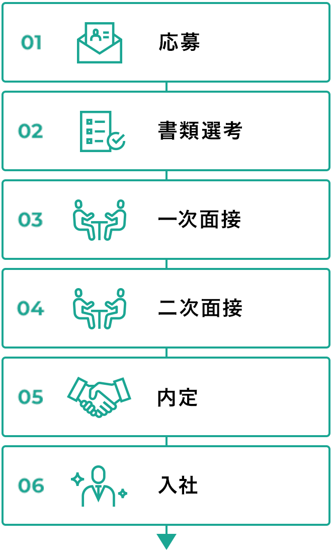 ※三次面接を実施する場合もございます。詳細は各職種ページをご確認ください。