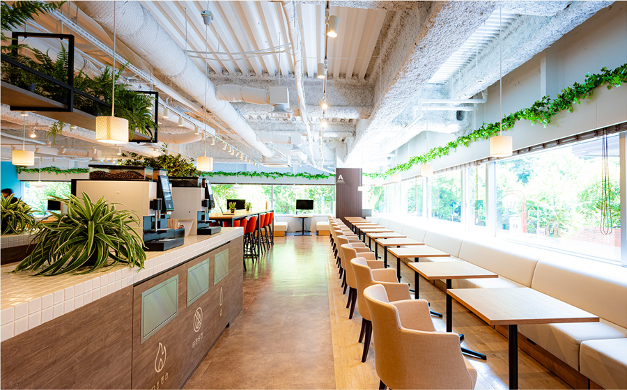 - ・社内カフェにフリーWi-Fi、コーヒーメーカー等完備