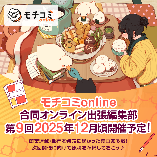 次回は、2025年12月頃に開催予定です。詳細な日程は、決まり次第、モチコミonlineに会員登録いただいたメールアドレス宛てにご案内します。漫画家志望者・クリエイターの方は、以下のページよりご登録ください。